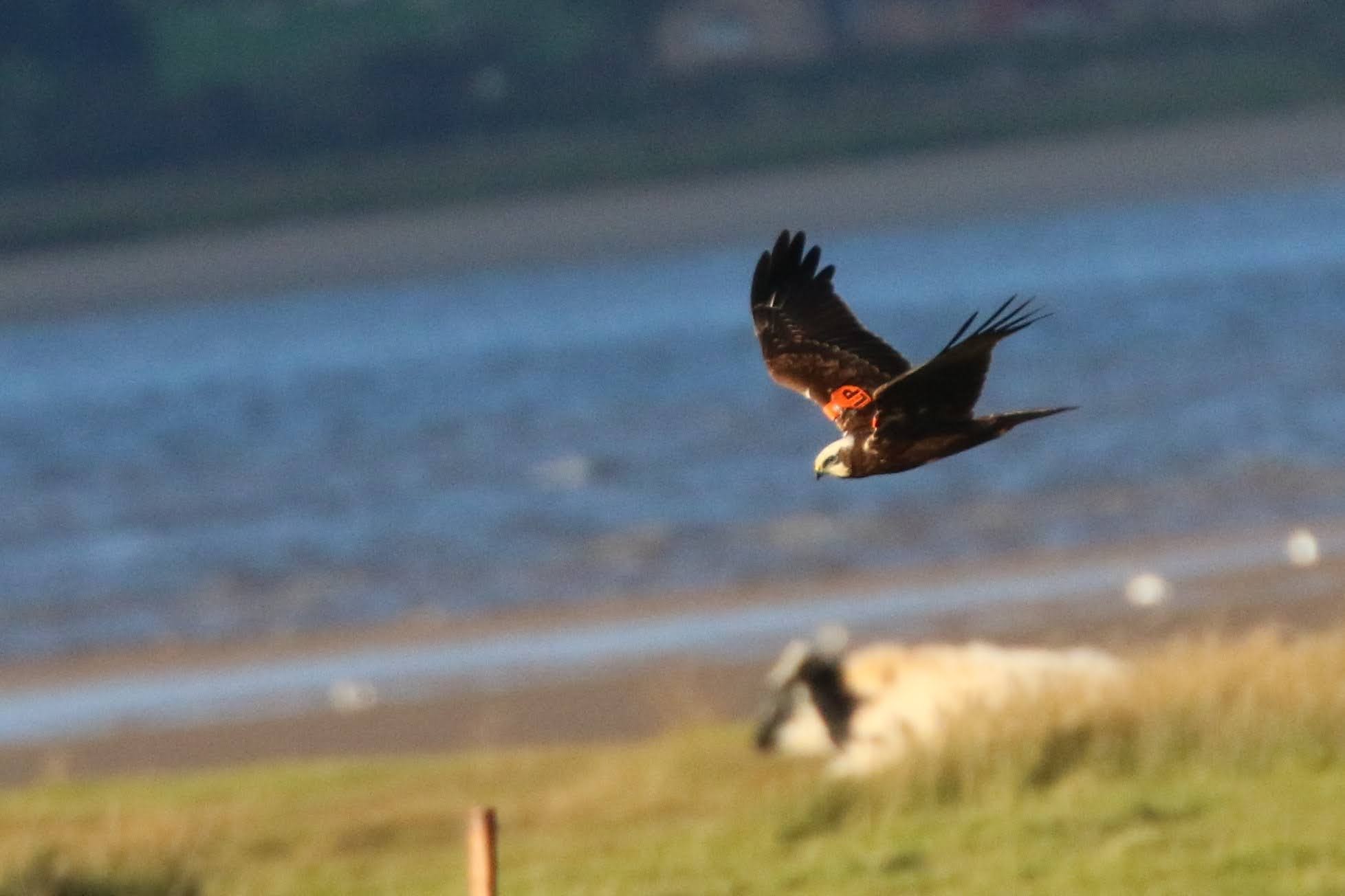 FJ50514 Tagged Orange LP seen 10 October 2020 Bowness-on-Solway, Cumbria, UK