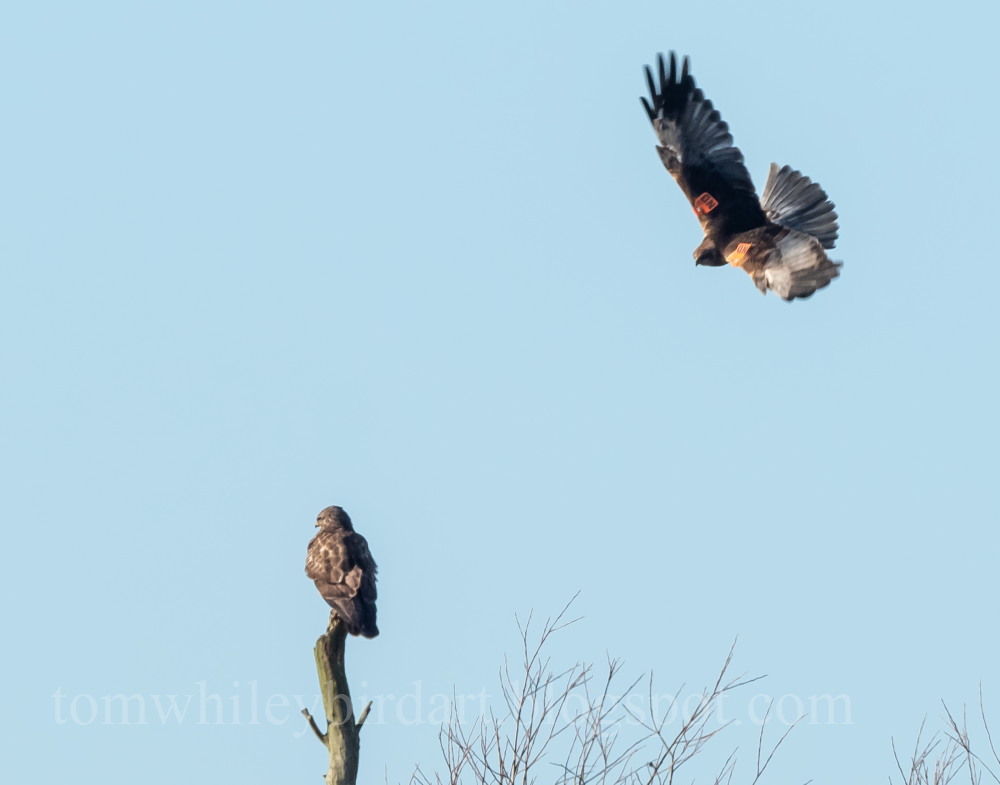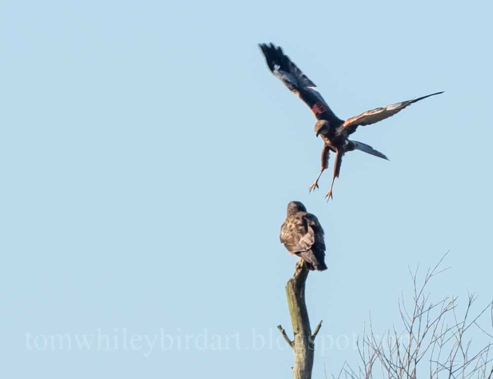FJ50518 tag code Orange Noir ND seen interacting with a buzzard at St Bennett's, Abbey near Ludham, Norfolk, 15 December 2022 the buzzard seems unfazed!