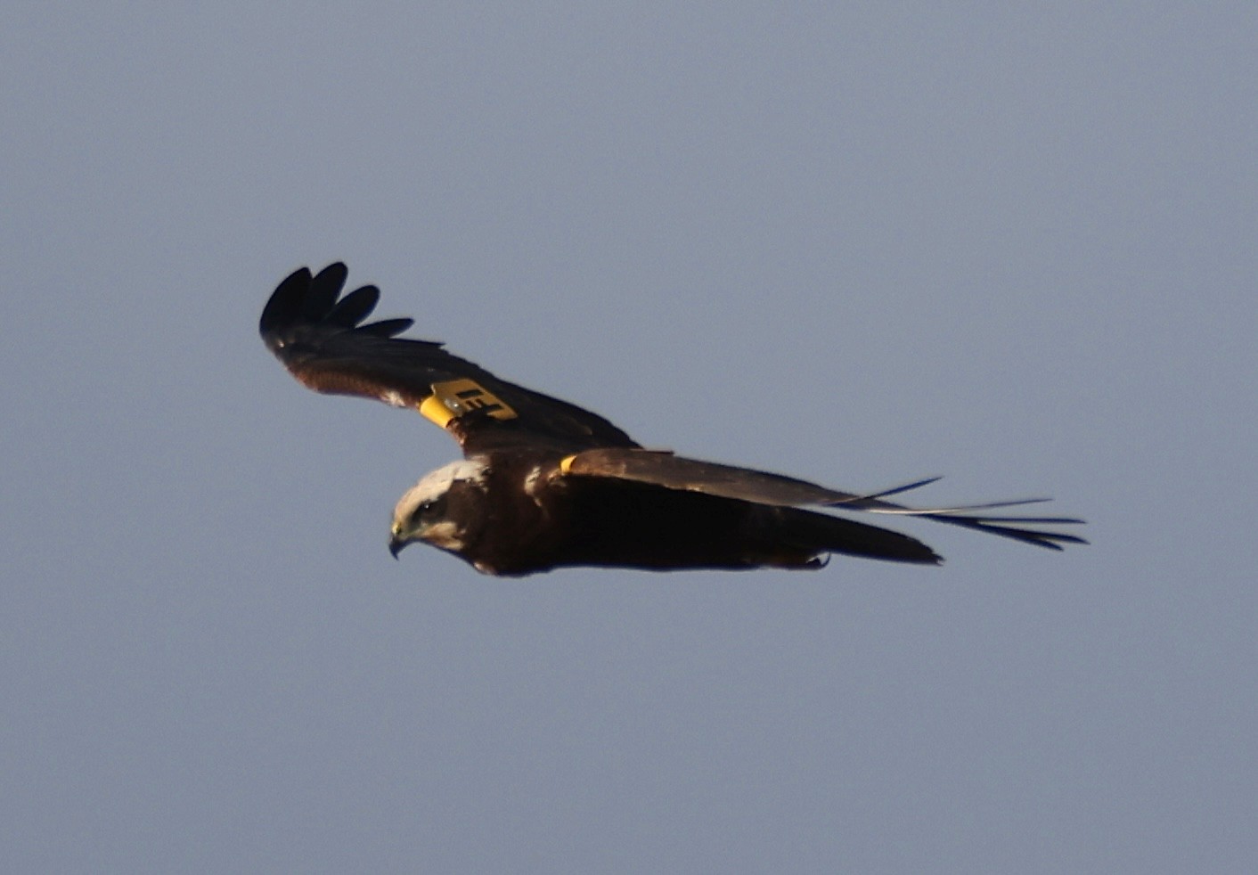 FP19992 tag code Yellow Noir FI seen 28 November 2025 Strumpshaw Fen, Buckenham, Norfolk, UK